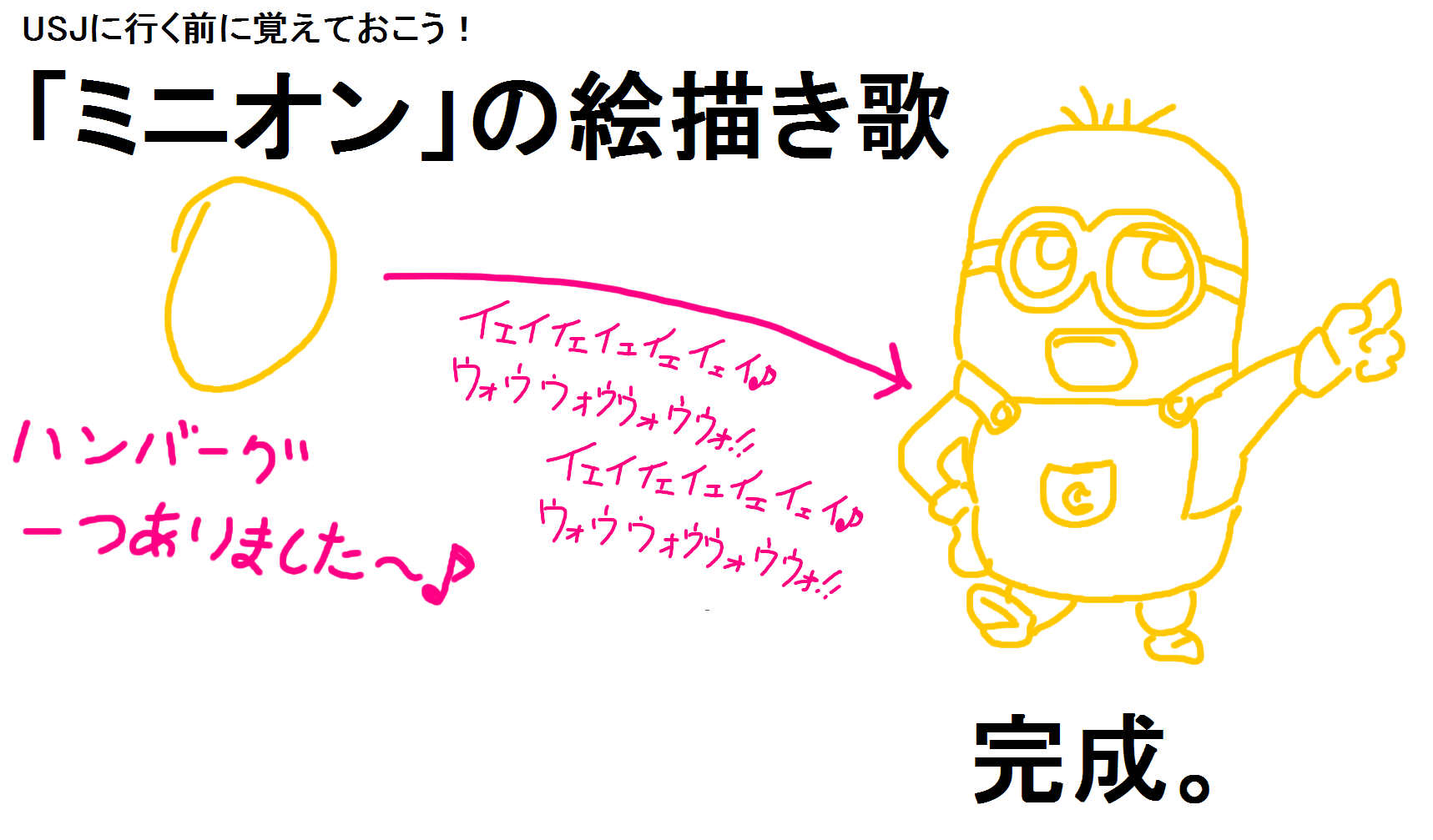 Usj情報局 L C A Studios 最近 流行りの 絵描き歌 私も作ってみました ミニオン が誰でもカンタンに描けるようになるはずです Usj ミニオン 映画 絵描き歌 Http T Co S5la8v0wml Twitter